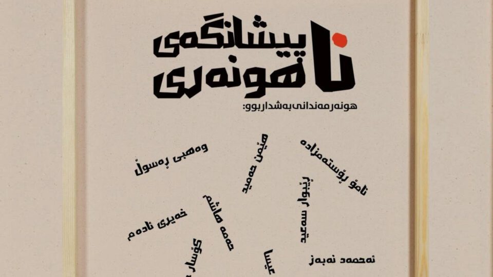 The participating artists include Wahbi Rasul, Rebwar Saeed, Namo Rostamzada, Hama Hashim, Ahmad Nabaz, Azad Karim, Naz Ali, Narmin Mustafa, Bashdar Nuri, Shukr Saeed, Khayri Adam, Jwar Isa, and Kosar Jalal.