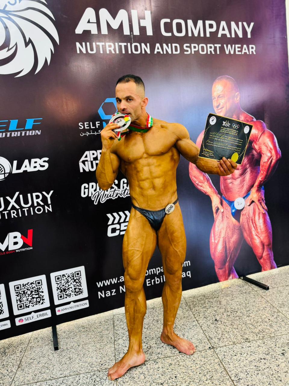 Goran Tariq is a brave and dedicated Peshmerga who, alongside his military duties, has built a strong passion for bodybuilding. Through relentless training and unwavering commitment, he achieved second place in Iraq’s national bodybuilding championship.