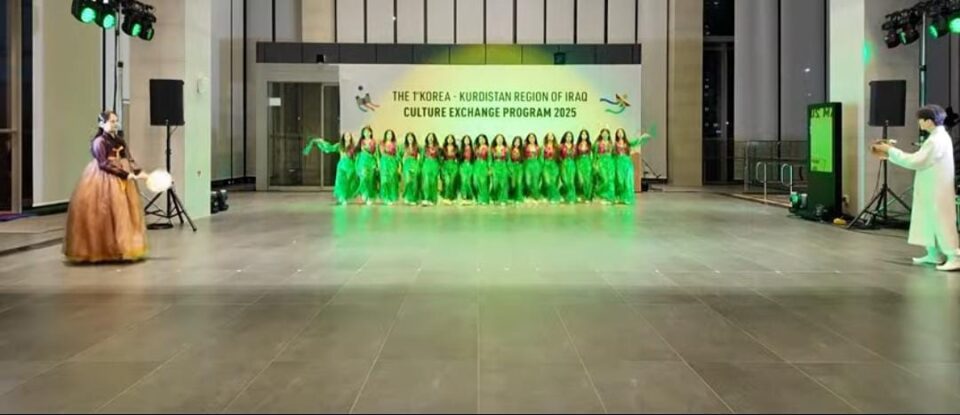 The performance began with the Kurdish girls performing the “Puchae Chum”—a traditional Korean fan dance—while wearing colorful Korean costumes. They then transitioned into a traditional Kurdish folk dance, dressed in vibrant Razawi-style Kurdish attire. The performance was met with enthusiastic applause and admiration from the Korean audience, who were particularly impressed by the synchronized movements, upbeat Kurdish music, and vivid costumes.